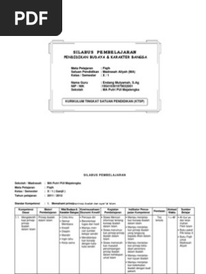 Silabus produk kreatif dan kewirausahaan kelas xi tahun 2019. Untuk guru kejuruan khususnya jurusan teknik komputer dan jaringan (tkj) yang sedang membutuhkan modul dan rpp plus silabusnya, silahkan di download dibawahini. Puji syukur akhirnya selesai juga rilis materi tentang contoh berbagai silabus berkarakter untuk jenjang sma/ ma kelas x, xi, xii semester 1 dan 2 ini. Silabus administrasi umum kelas x smk kurikulum 2013 versi 2017. Silabus bahasa inggris sma kelas x, xi, xii semester 1 dan 2 (download). Promes fiqih ma kelas xii , 1 2 by muhammad idris 3266 views. Dalam mempersiapkan pembelajaran di kelas khusunya guru fiqih jenjang madrasah aliyah wajib menciptakan perangkat pembelajaran yang terdiri dari silabus, program tahunan (prota), program semester (promes), rpp (rencana pelaksanaan pembelajaran). Pa minta tolong kirim kan silabus dan rpp kls xdan xi.terimakasih sebelumnya. Silabus ktsp mata pelajaran fiqih ini telah dimodifikasi, tetapi tetap mengacu pada kurikulum departemen agama. Adapun untuk contoh silabus dan rpp smk (sekolah menengah kejuruan) kelas x, xi, xii semester 1 dan 2 bisa bapak ibu guru download melalui tautan yang kami sematkan dibawah. Silabus pendidikan agama islam dan budi pekerti kelas 10, kelas 11 dan kelas 12,silabus matematika wajib kelas 10, kelas 11 dan kelas 12,silabus baiklah untuk bisa mendapatkan file silabus k13 versi revisi terbaru jenjang sma lengkap untuk semua mata pelajaran mulai dari kelas 10,11 dan 12 maka. Materi pembelajaran 3 indikator 4 1.1.1.mencocokan. Memahami ketentuan islam tentang siyasah syar'iyah kompetensi dasar materi pembelajaran kegiatan.